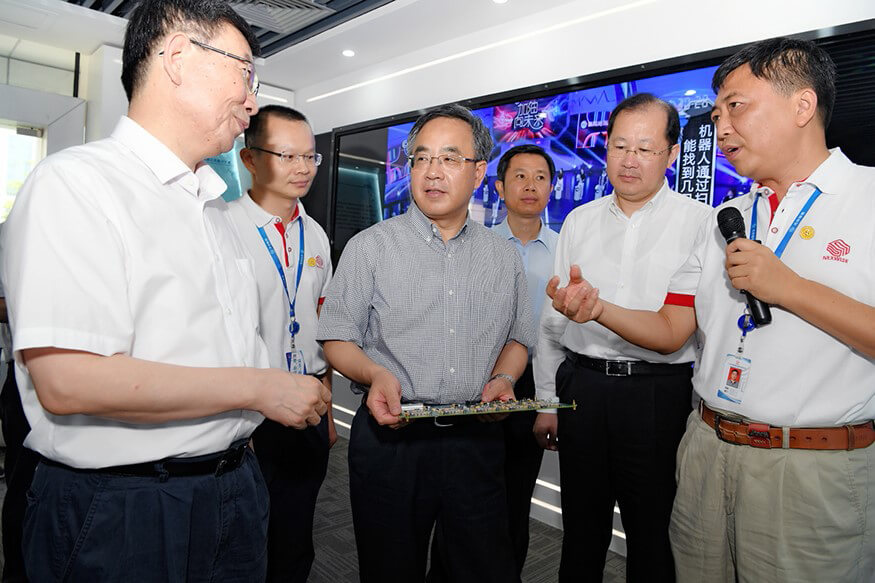 2017年7月29日上午,中央政治局委员、广东省委书记胡春华在广东省委副书记、广州市委书记任学峰、广东省委秘书长江凌、副省长黄宁生等领导陪同下赴广州市企业调研,今年会jiannianhui(集团)智能科技有限公司官网作为被调研企业之一,公司董事长孙超向胡春华书记介绍了公司的发展历程,研发中心总经理朱勇杰介绍了公司自主研发的专用高性能计算平台这一核心技术的研发历程、国内外的行业地位、发展前景等。